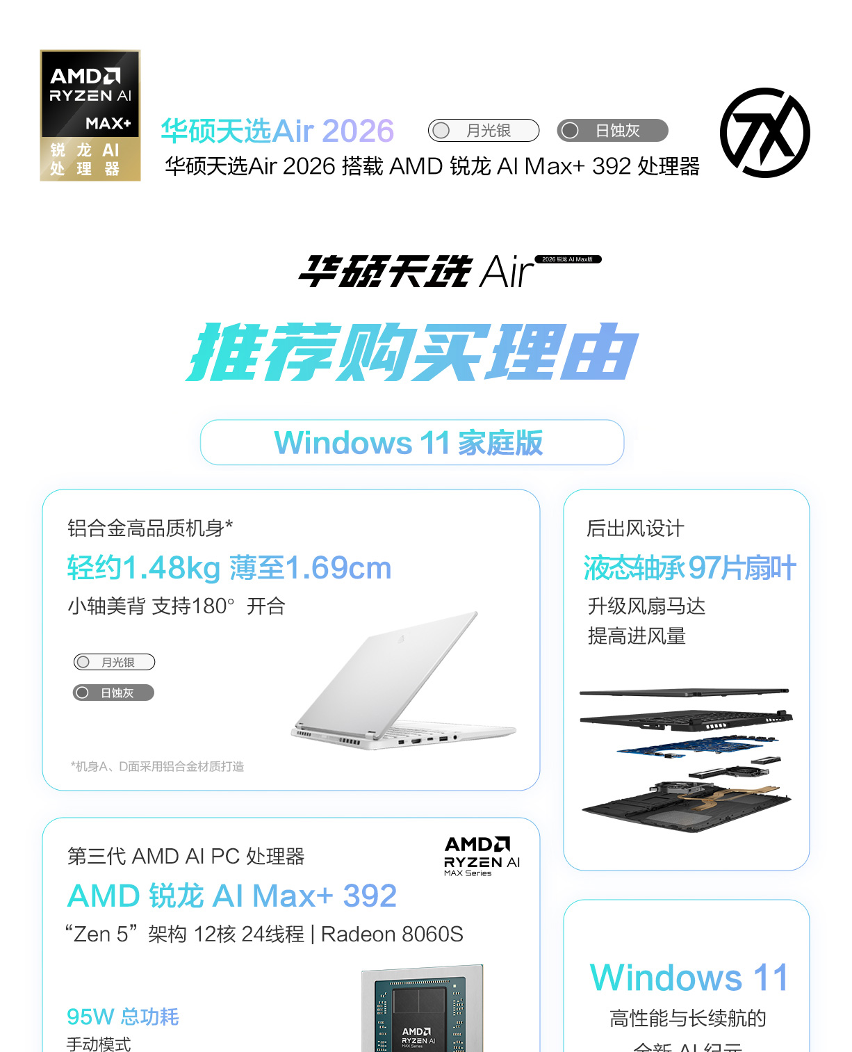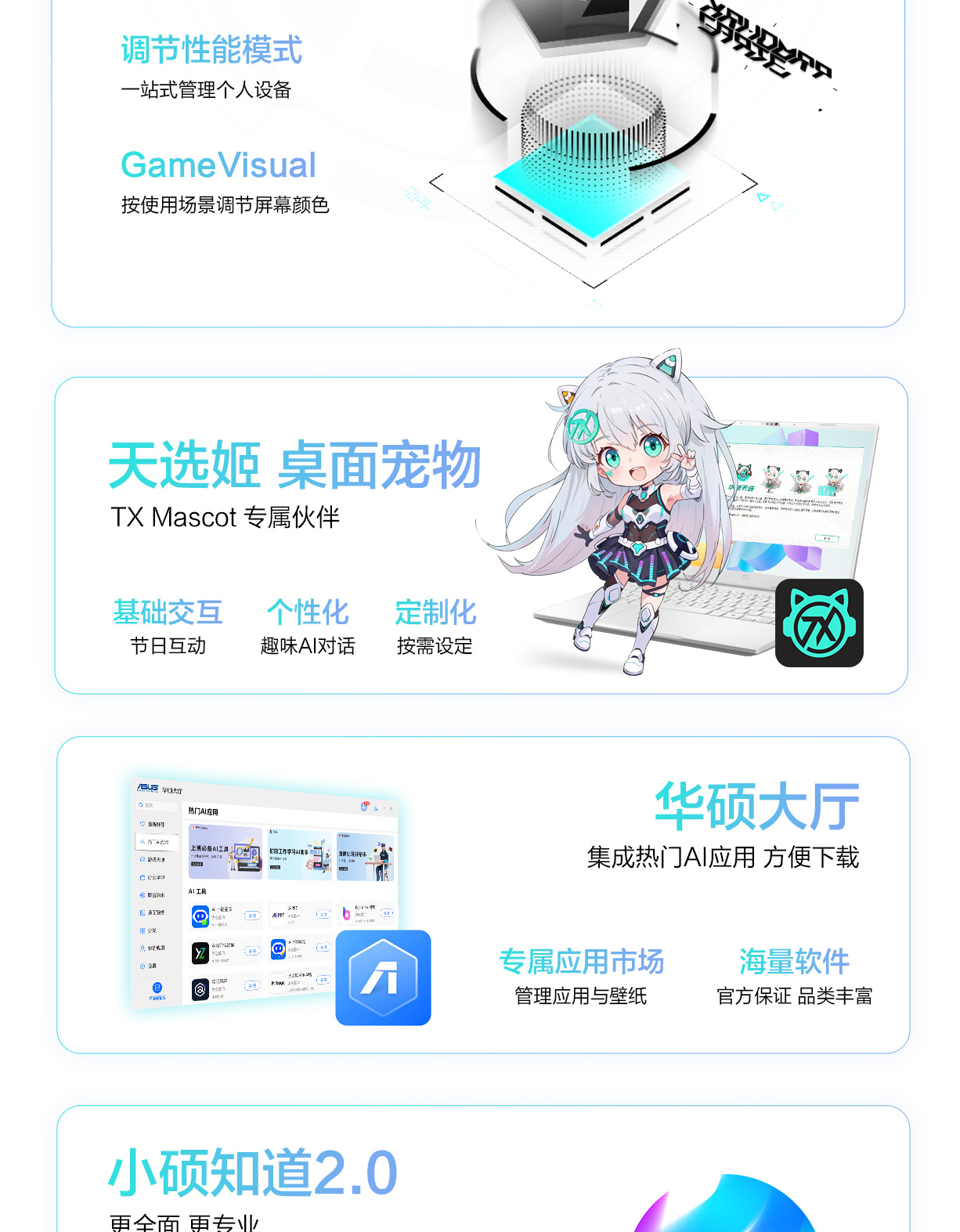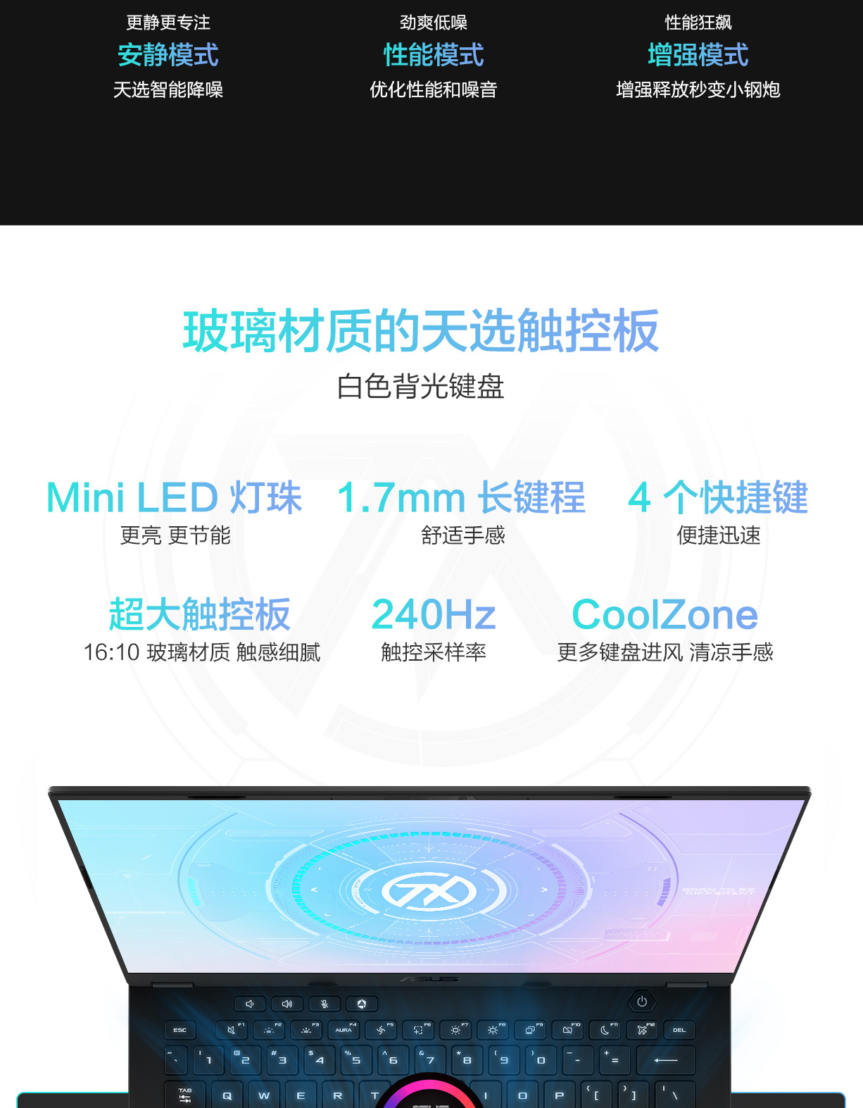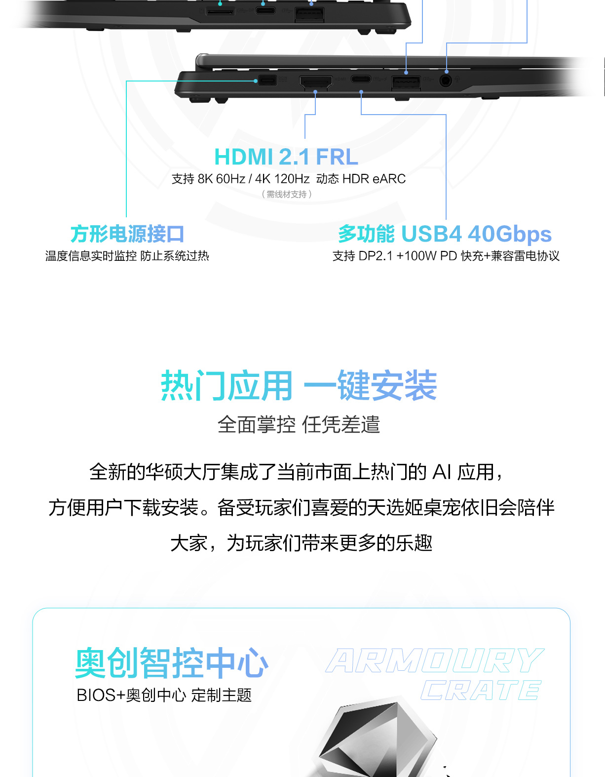 * 标准的华硕电池续航测试环境如下:Windows 操作系统、150尼特亮度的显示模块、灯效关闭及其它应用设置。