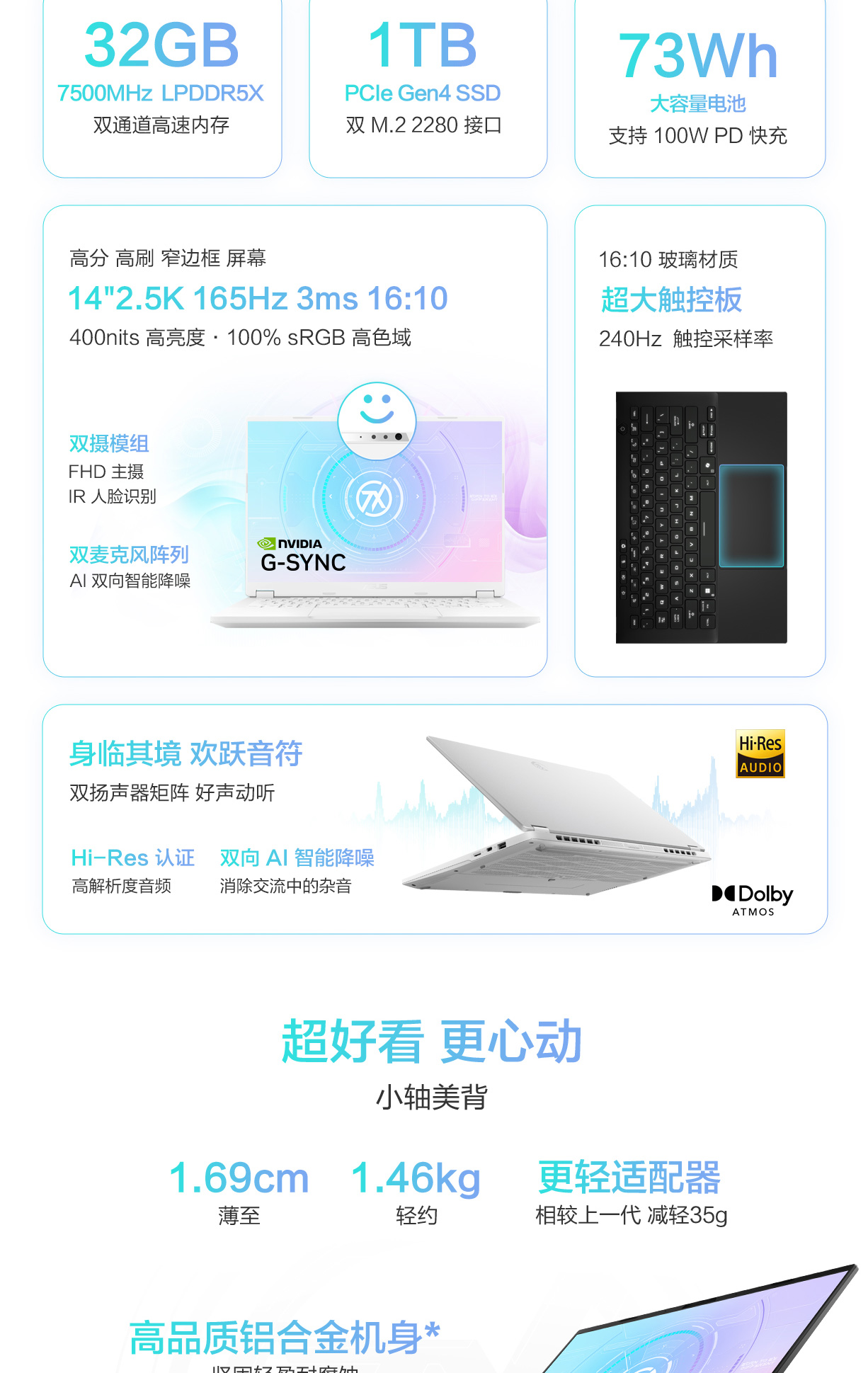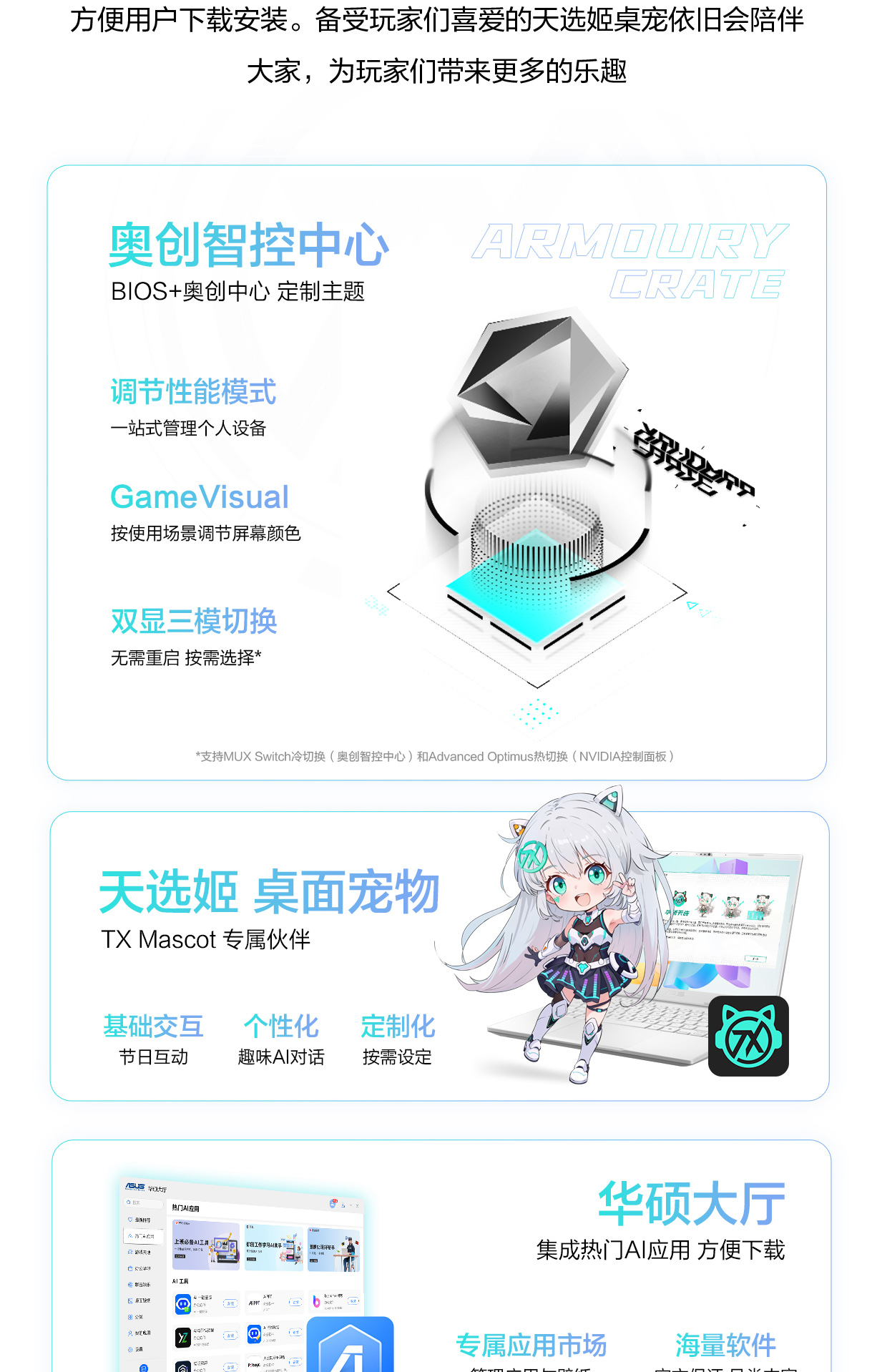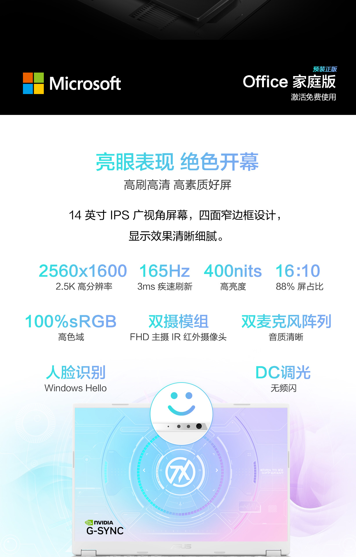 * 标准的华硕电池续航测试环境如下:Windows 操作系统、150尼特亮度的显示模块、灯效关闭及其它应用设置。