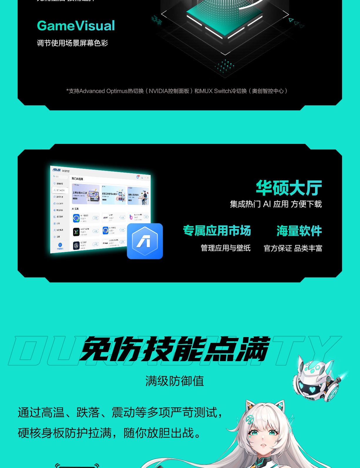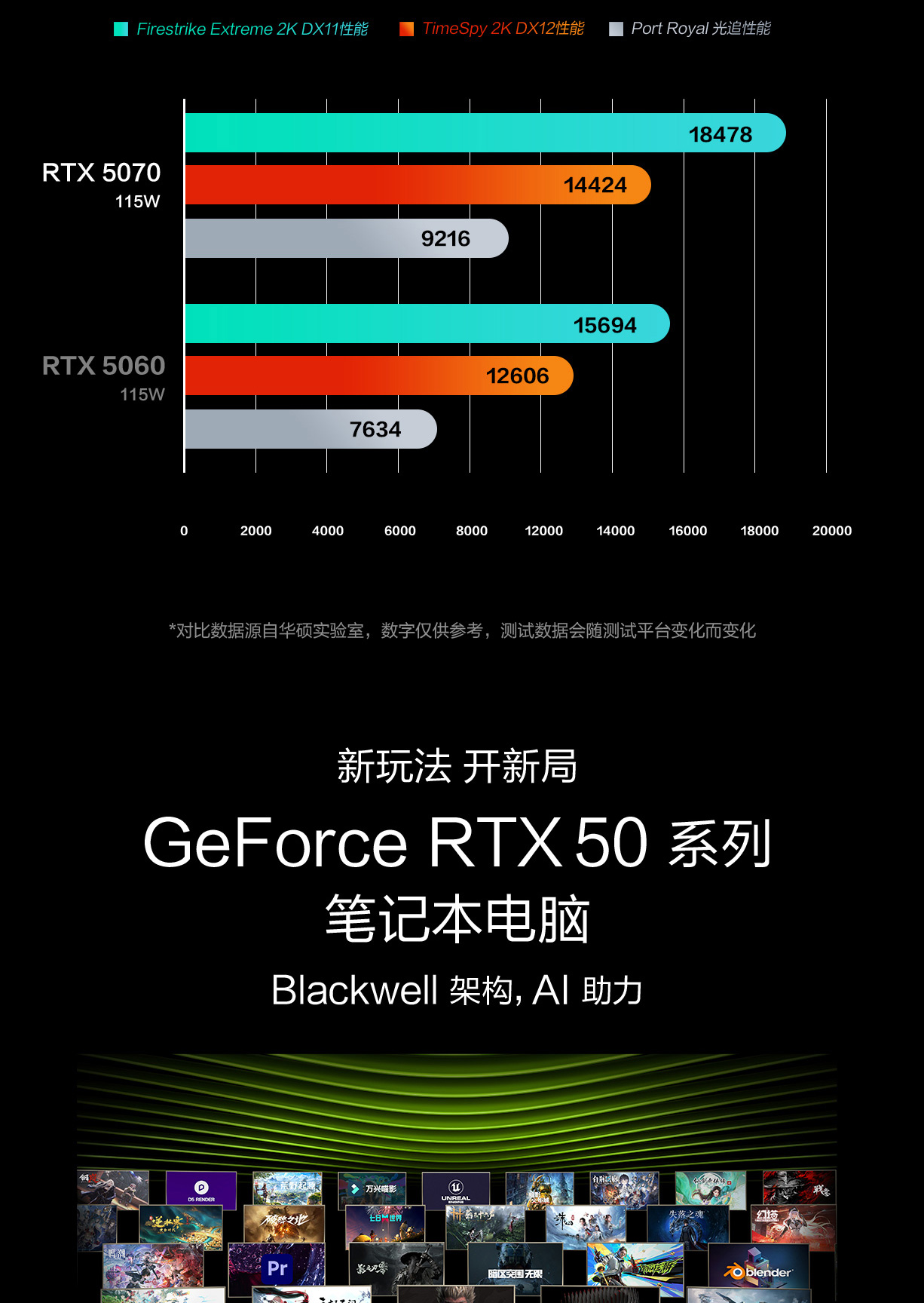 - 本页面数据为理论值,由华硕内部实验室在特定测试环境下测得(详见具体说明)。实际使用效果可能因产品个体、软件版本、使用条件及环境差异略有不同,请以实际情况为准。
