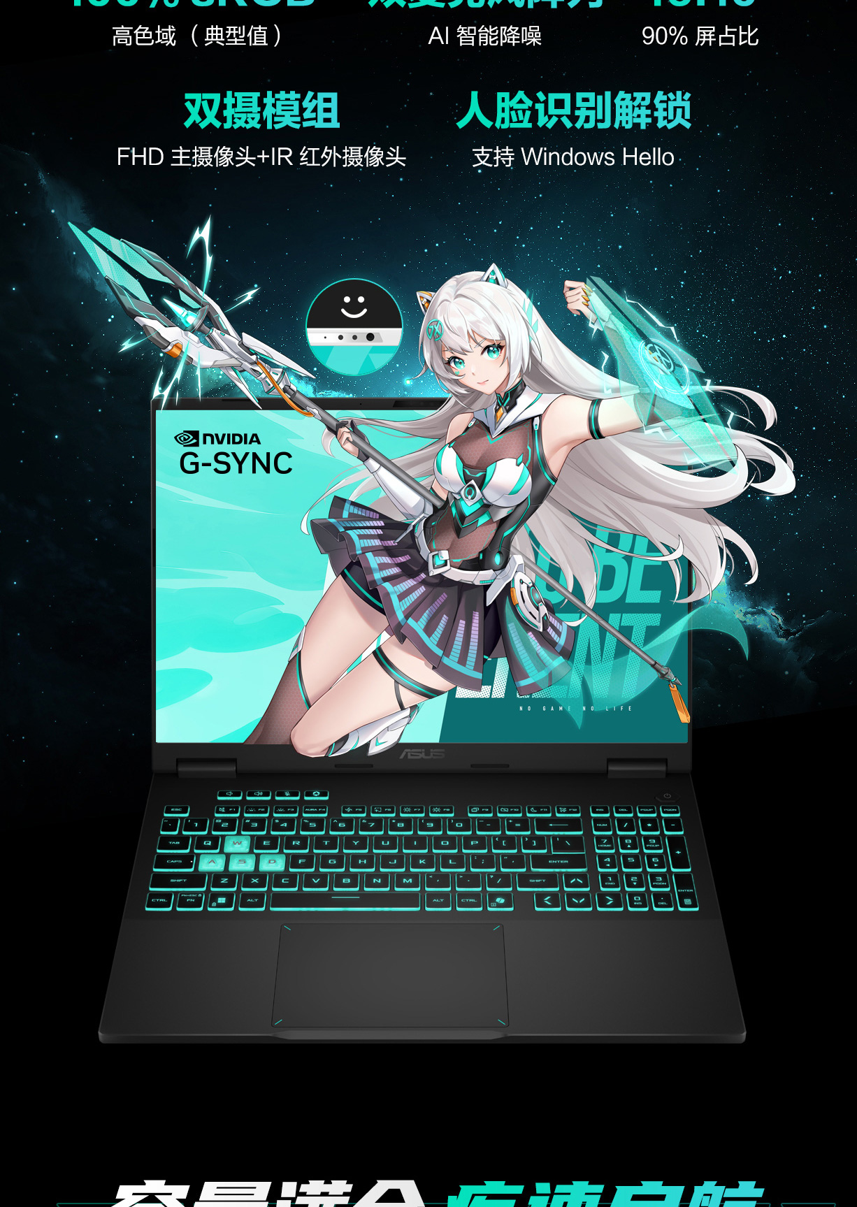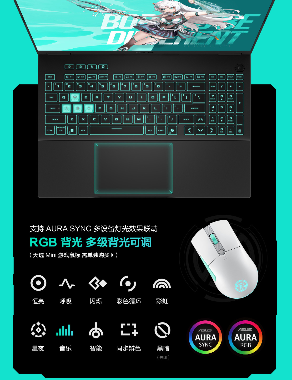 * 标准的华硕电池续航测试环境如下:Windows 操作系统、150尼特亮度的显示模块、灯效关闭及其它应用设置。