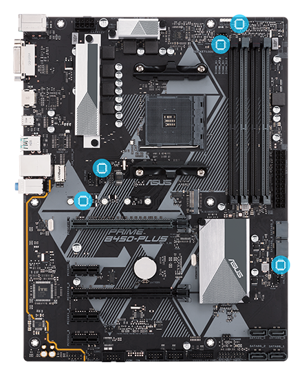 华硕 Prime B450 大师系列主板采用先进的5重防护 III,其具备高品质组件、出色电路设计以及严苛标准,以多方位防护保证主板的质量与长期耐用性。这代表您的计算机具备出众的防护力及稳定度,也是华硕主板品牌以数十年制造经验所提供的智慧结晶。