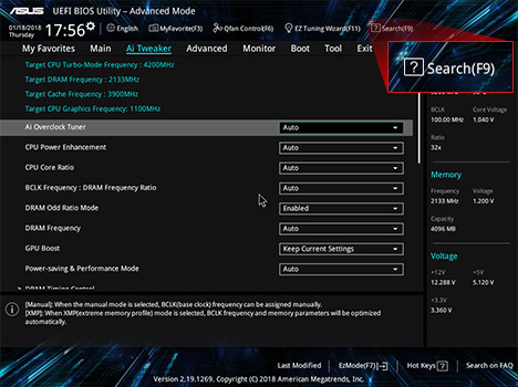 搜索功能 准备好做更深入的探索时,高级模式可让您全面控制主板的各个方面 — 内置的搜索功能可在瞬间找到所需设定。