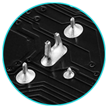 PCIe 和 DIMM 针脚周围均有强化的焊接点。