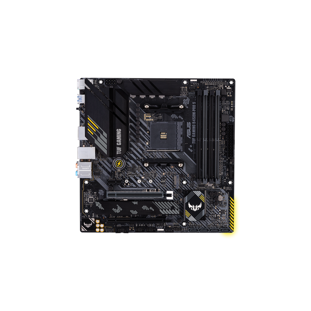 TUF GAMING B450M-PRO S 重炮手电竞主板拥有怪兽级供电解决方案和更全面的散热控制选项,可轻松驾驭新一代AMD Ryzen处理器。再加上稳定支持高频内存和疾速存储性能,是玩家打造强悍电竞主机的明智之选。