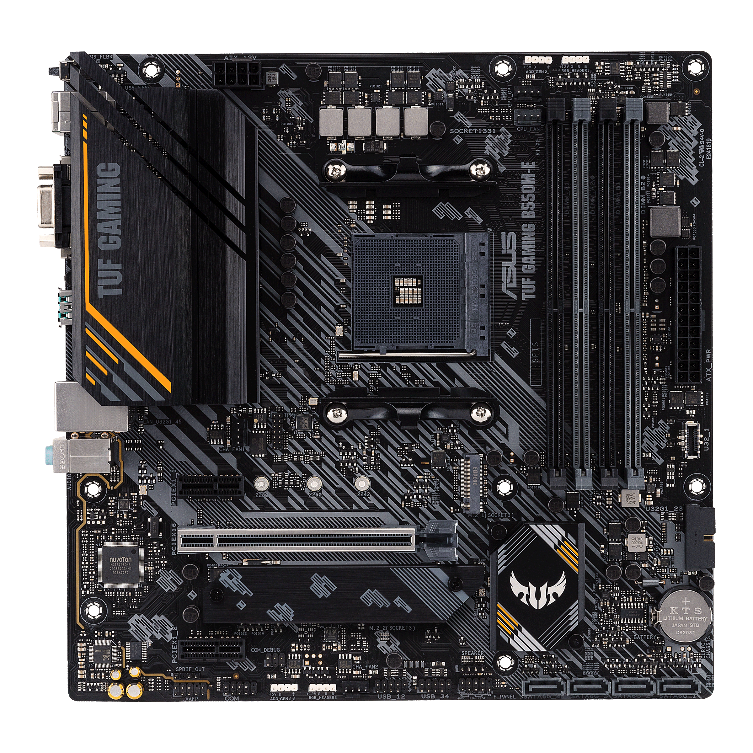 TUF GAMING B550M-E电竞主板拥有怪兽级供电解决方案和更全面的散热控制选项,可轻松驾驭新一代AMD Ryzen 处理器。再加上稳定支持高频内存和疾速存储性能,是玩家打造强悍电竞主机的明智之选。