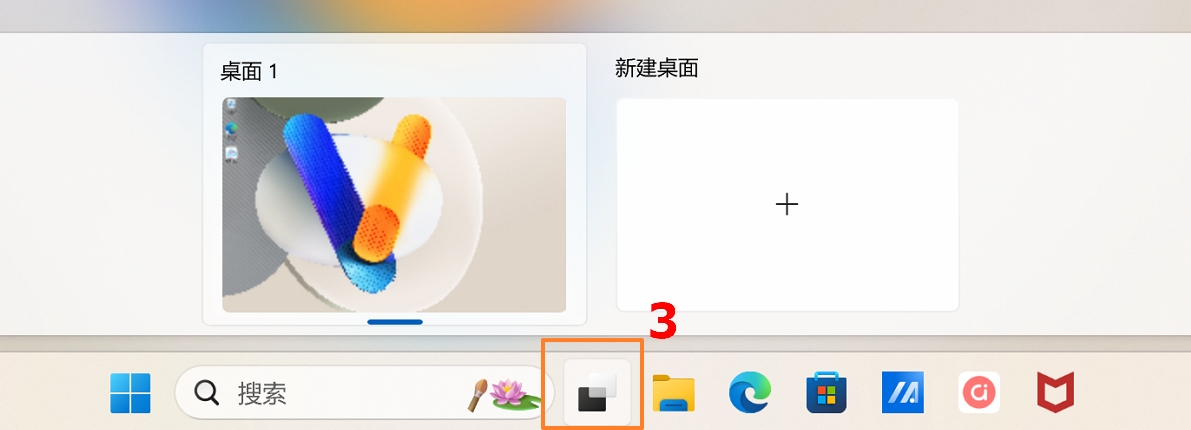 ③:透过工作检视功能,可以快速在已开启的应用程序间切换,您也可以使用工作检视功能切换桌面。了解更多虚拟桌面的介绍。