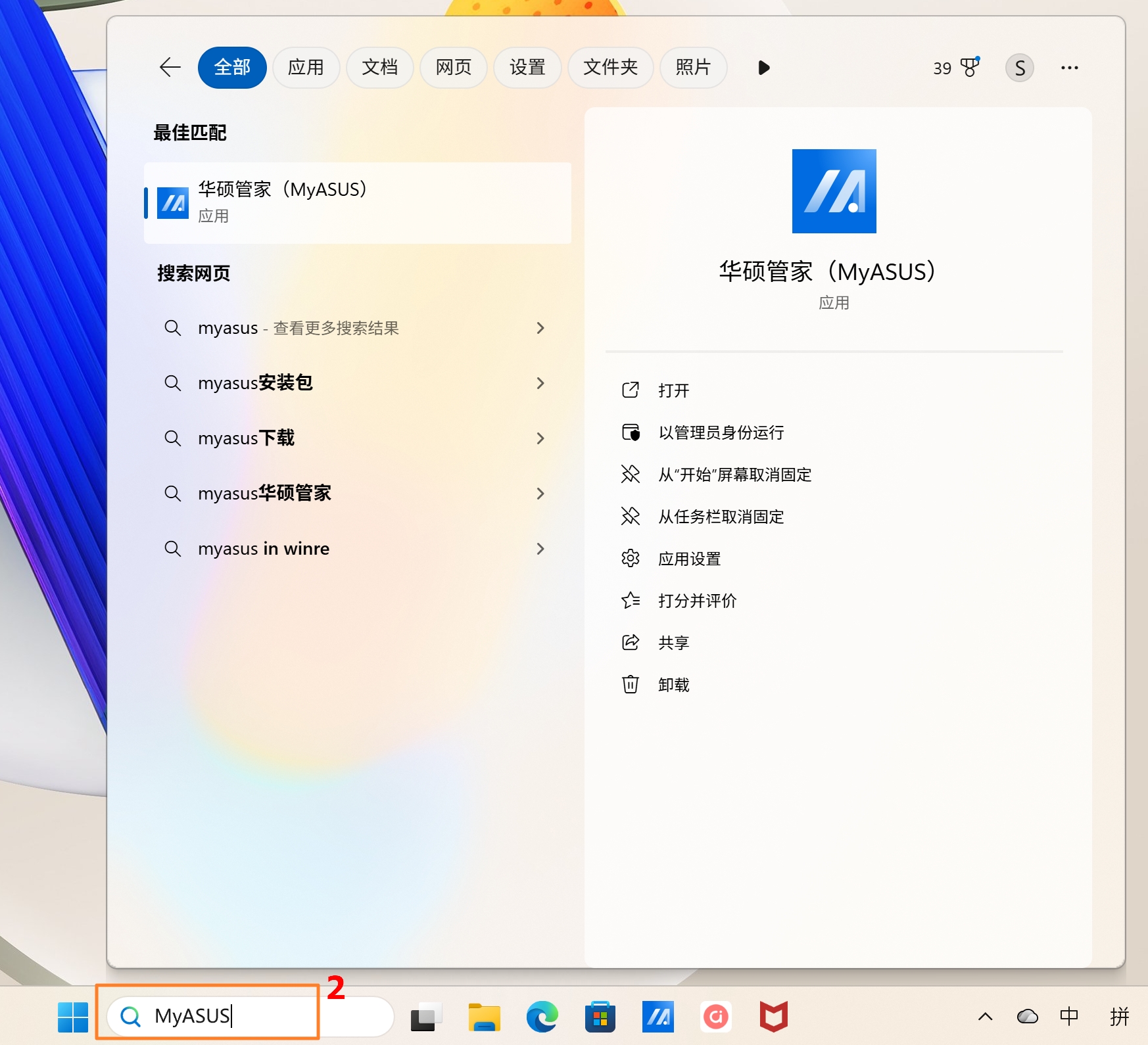 ②:在这里输入文字来搜索应用程序、文件或设置。了解更多搜索应用程序、文件、设置等项目。
