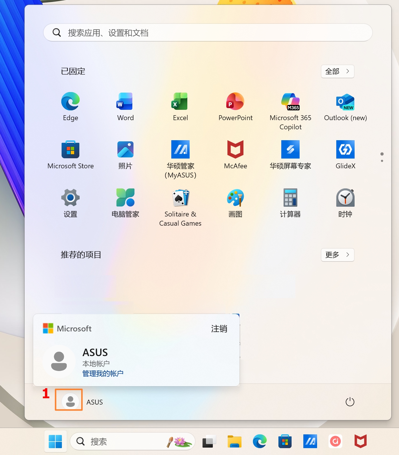 在开始菜单中可以打开您喜爱的应用程序、最近的文档,以及用于寻找任何项目的强大搜索方块。以下将会依序说明各个项目/功能的介绍。