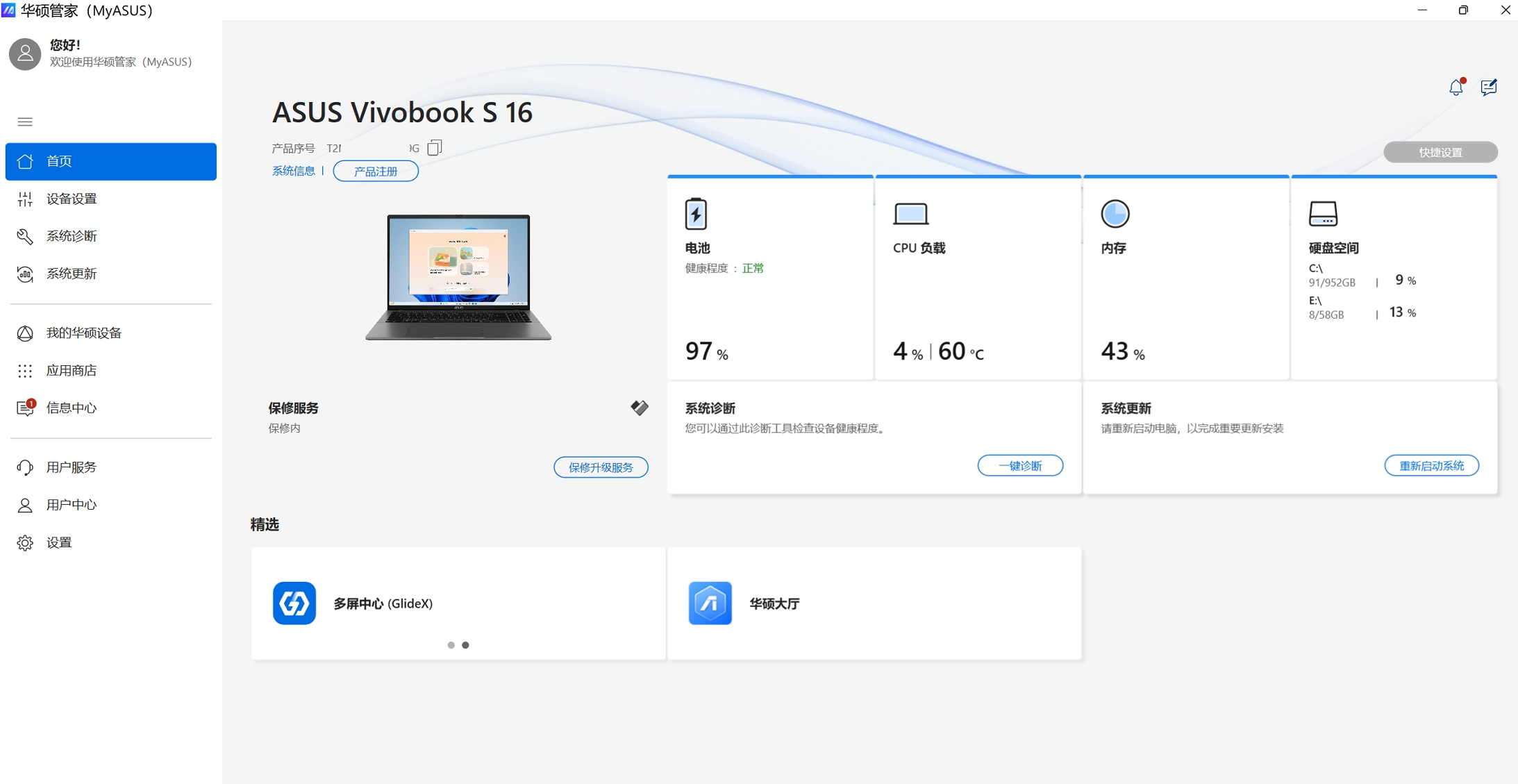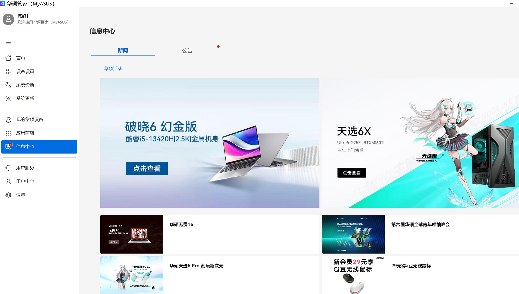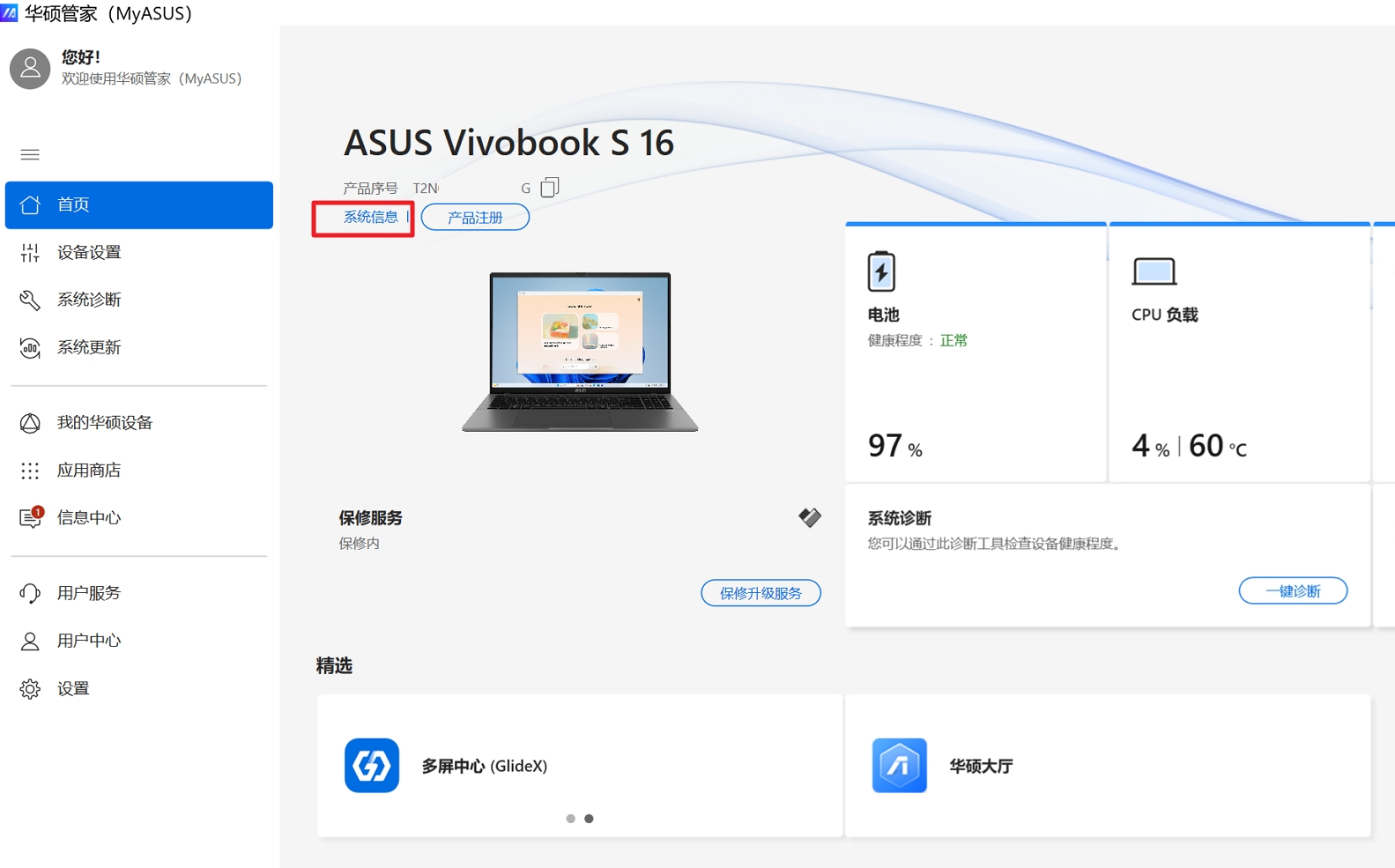 华硕管家MyASUS首页