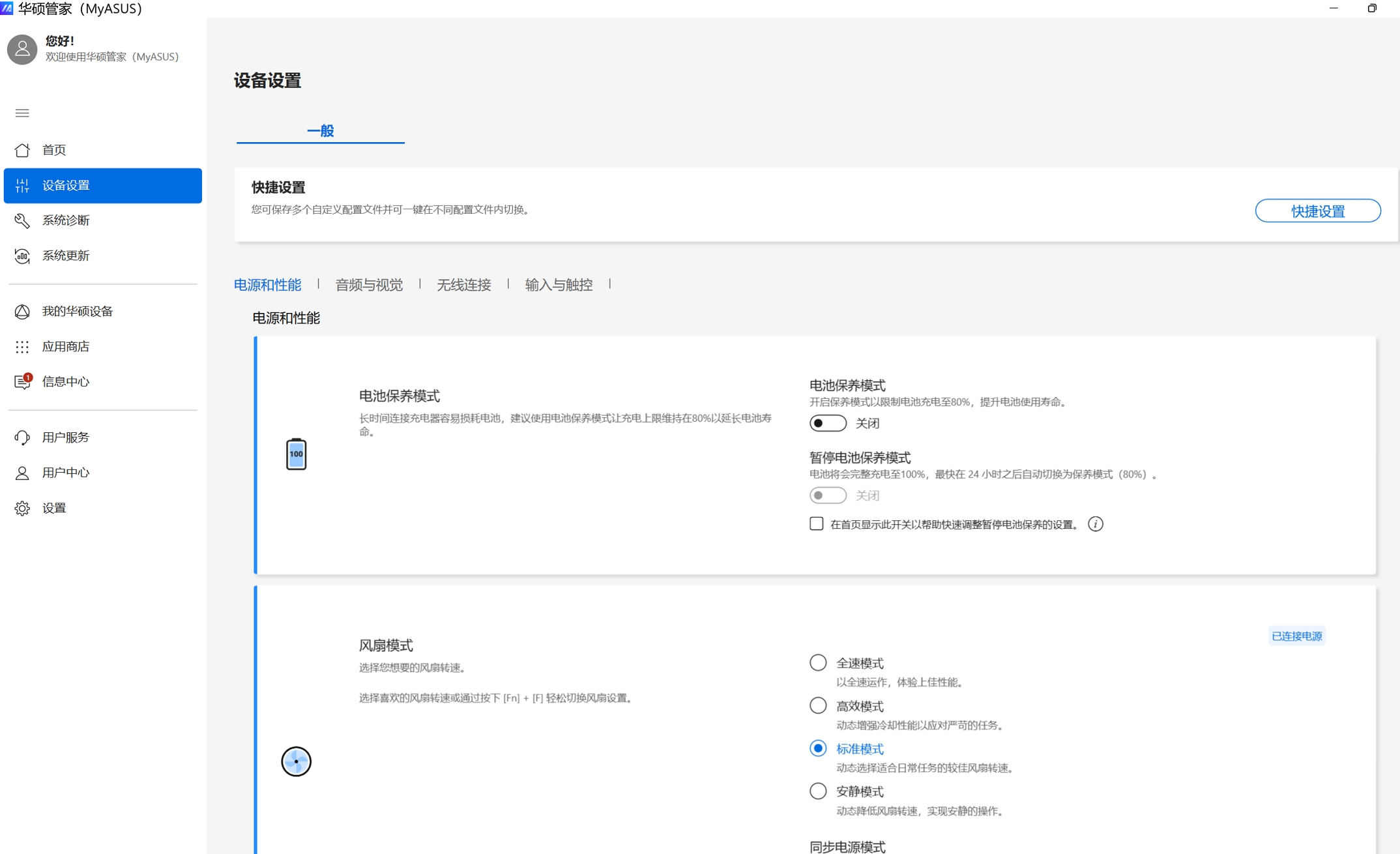 可以在[设置]中调整您喜爱的 MyASUS 体验方式。