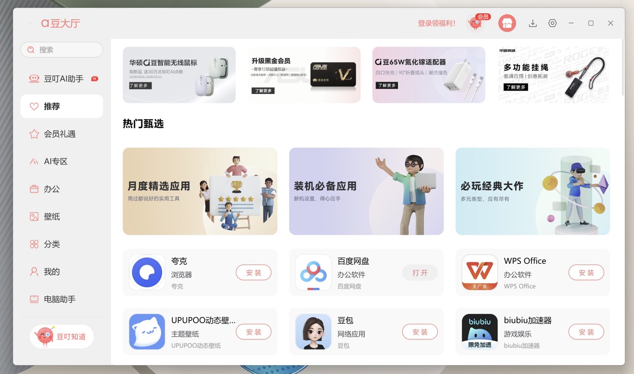 点击【应用商店】后,将根据电脑机型跳转打开华硕大厅/a豆大厅/ROG应用商店;