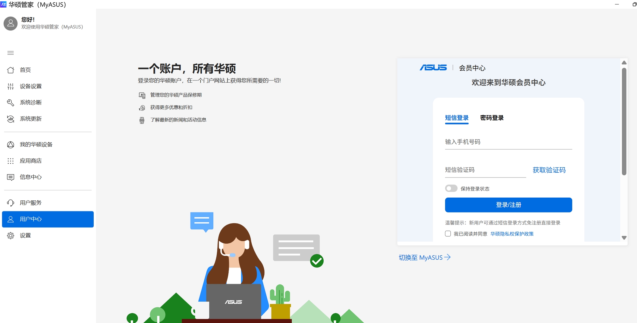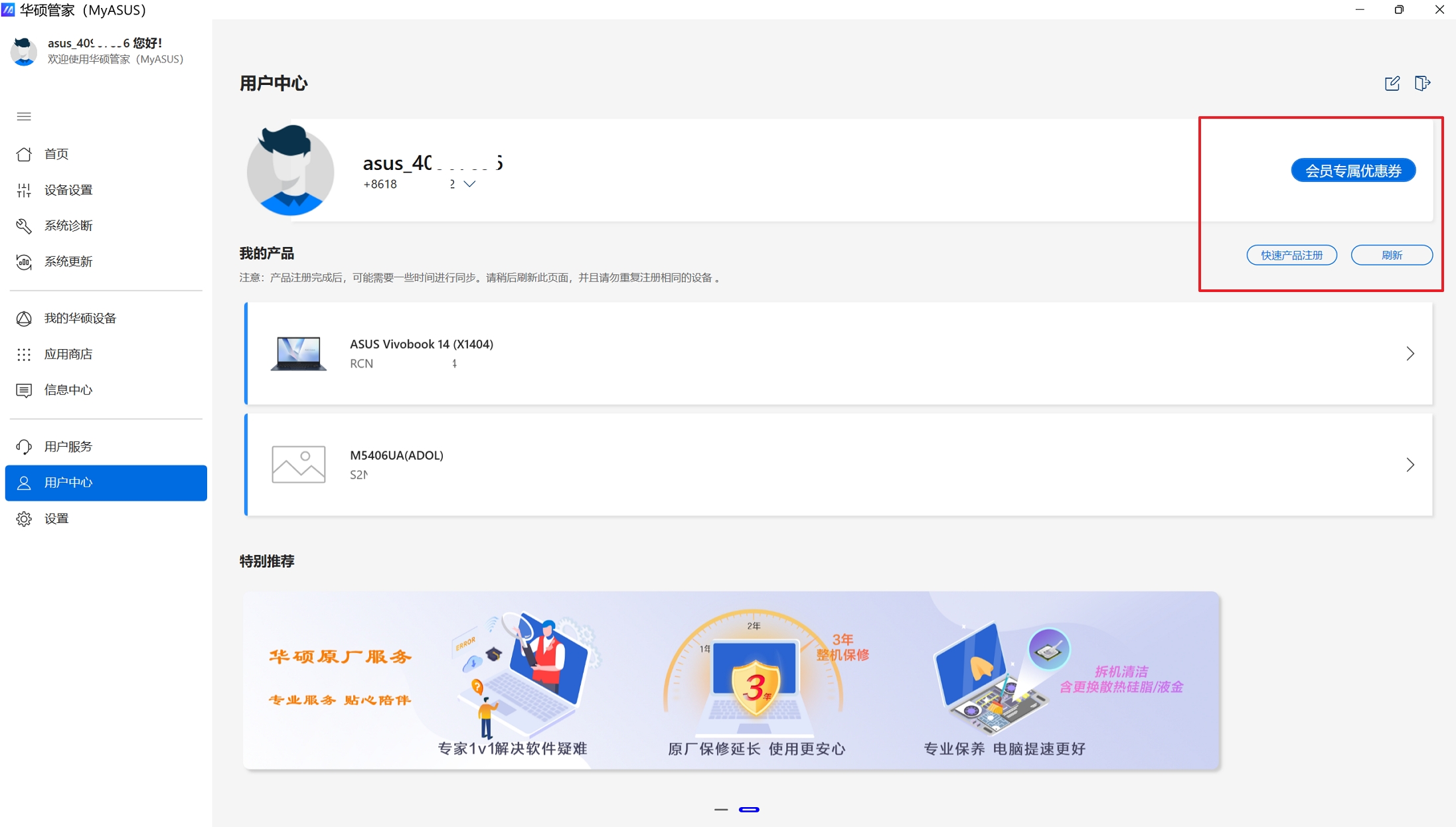 可注册登陆华硕会员,注册产品、查询会员专属优惠券领取激活等服务。