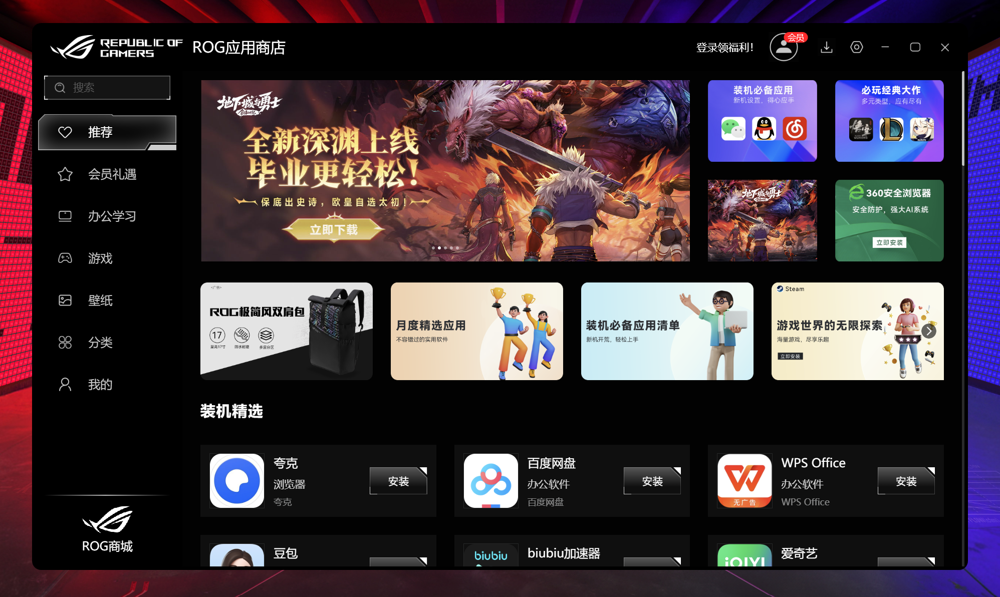 ROG 游戏笔记本电脑,将打开“ROG应用商店”